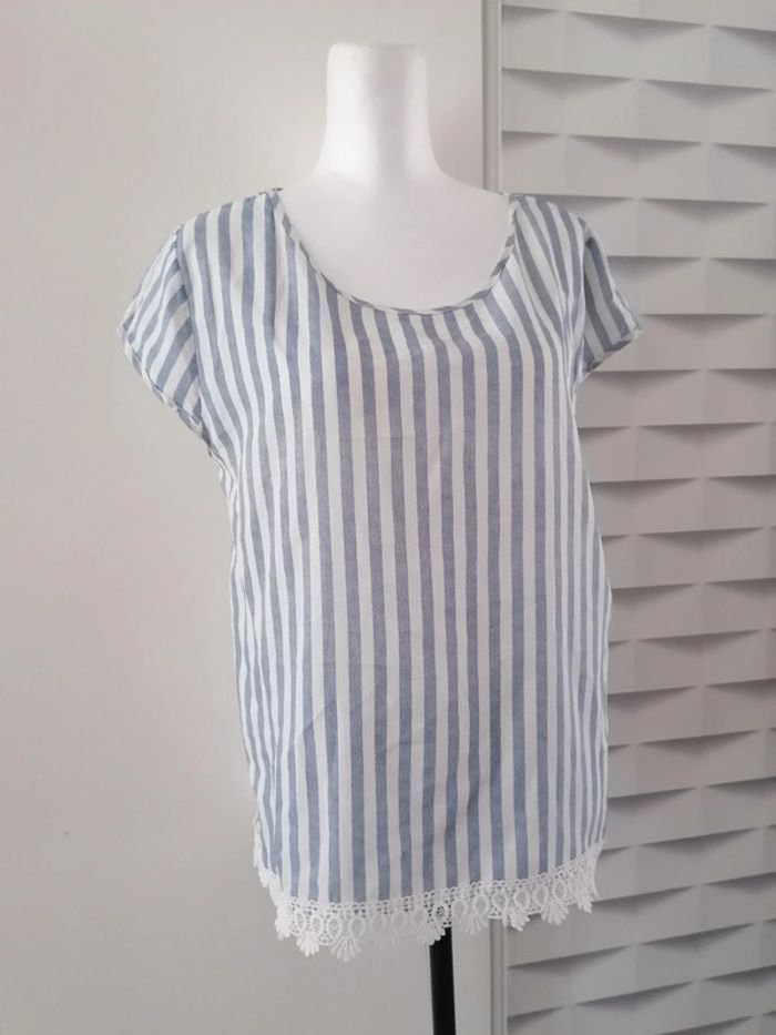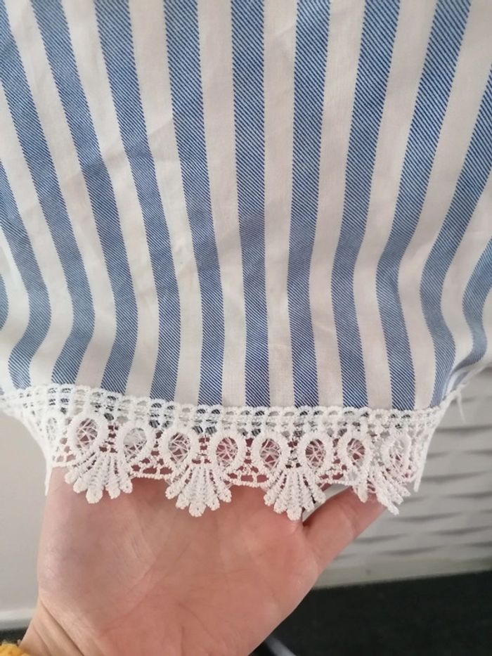 Top blouse rayé dentellé 100% coton - photo numéro 1