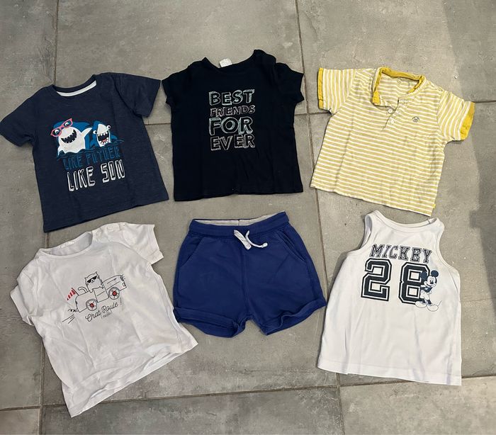 Lot vêtement été 18 / 24 mois un short 4 tee shirts et un débardeur - photo numéro 1