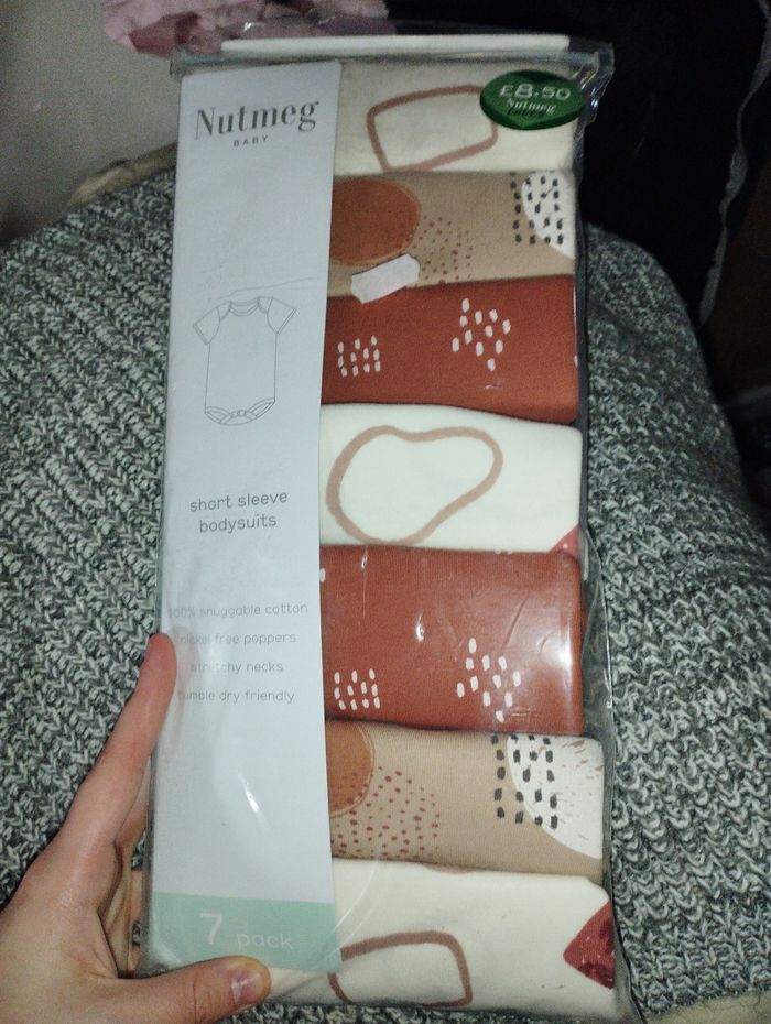 7 body dans les tons brun et nude manches courtes 0-3 mois