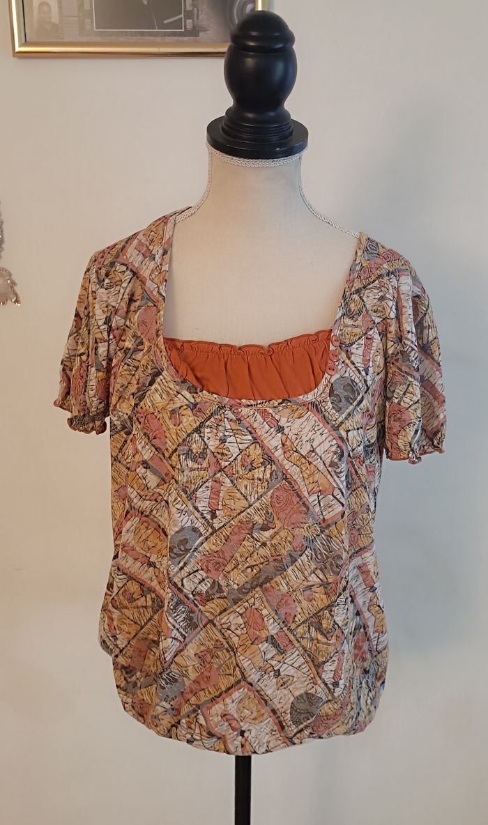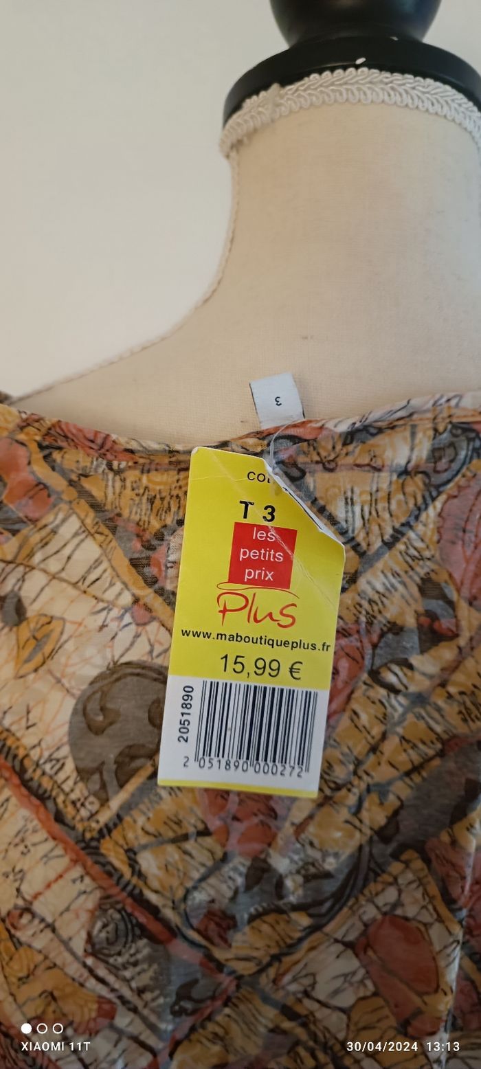 T-shirt femme taille 40/3 Coloris jaune,rose, gris, blanc, marron imprimés Manches courtes Taille élastique Neuf avec étiquette