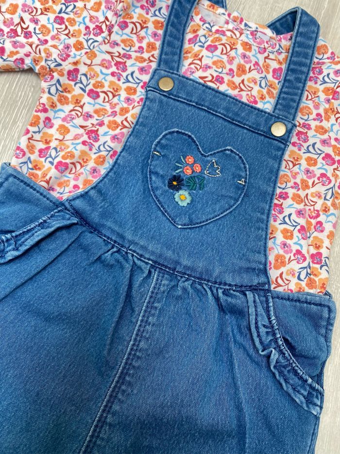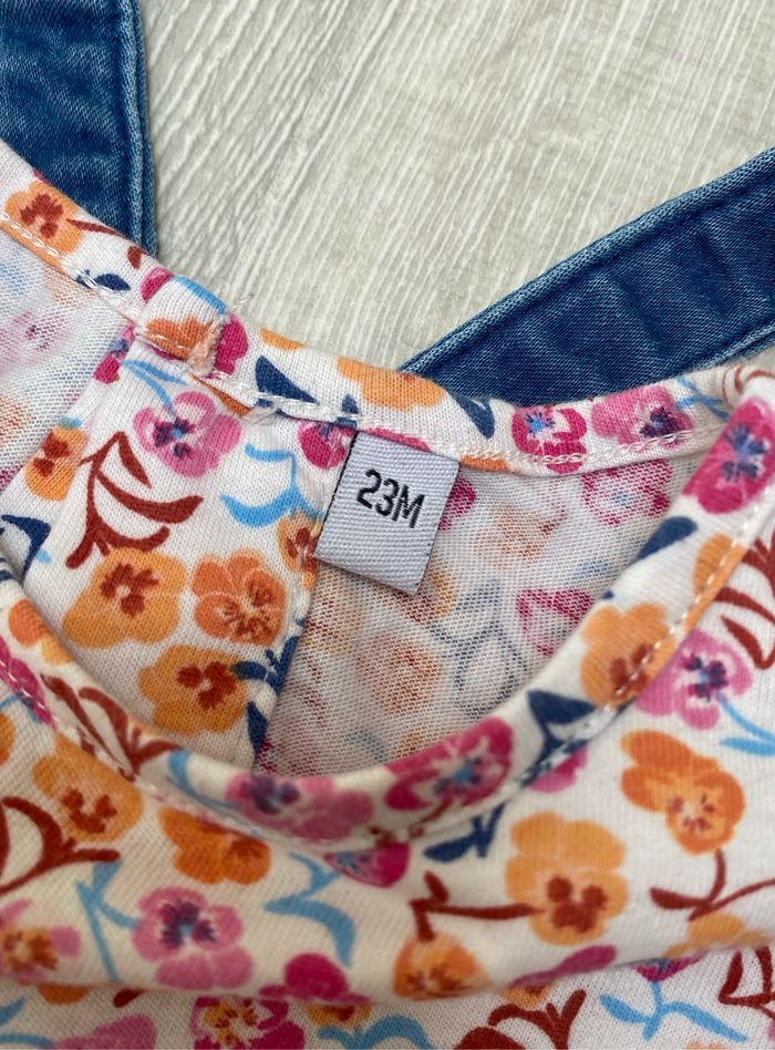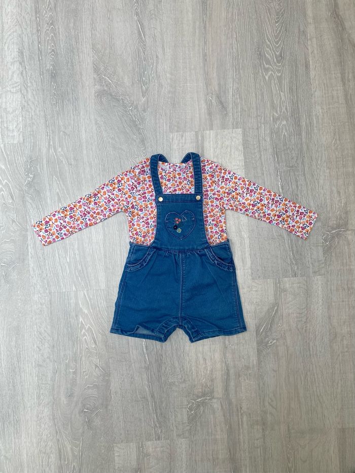 🌸 Salopette-short avec sous-pull 🌸 Orchestra 🌸 24 mois 🌸 Bleu/blanc/rose/orange 🌸 Très bon état
