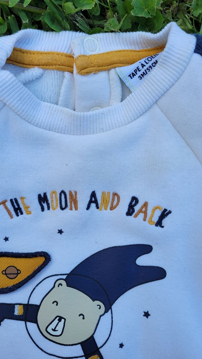 Pull tape a l'œil blanc 3mois ourson 🐻 astronaute. "To the moon and back"