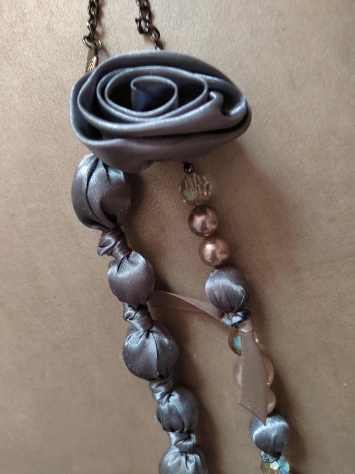 Superbe sautoir satin gris
