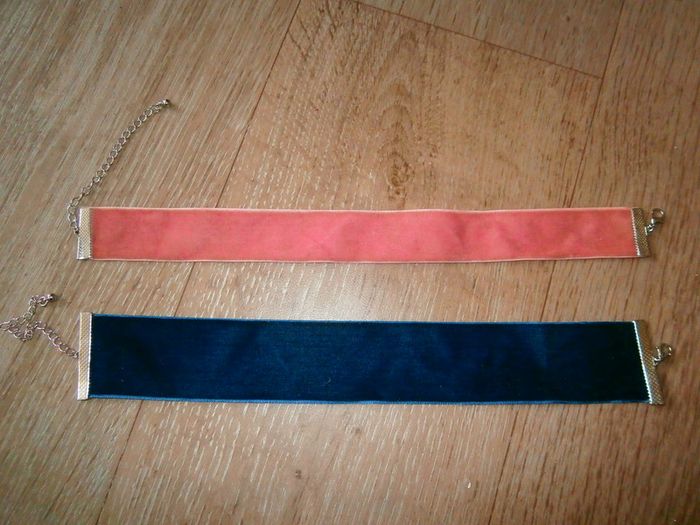 en velours-largeur: 4cm (bleu)et 2.5 ( rose)
