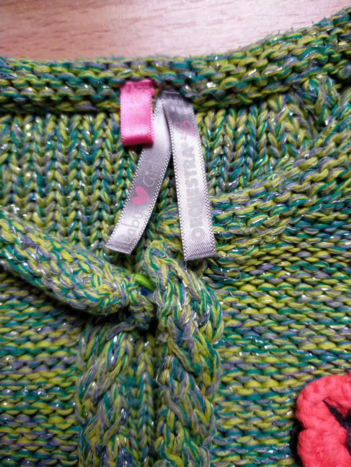 Jeans gris à pois rose Pat et Ripaton Gilet vert pailleté avec fleurs en crochet Orchestra