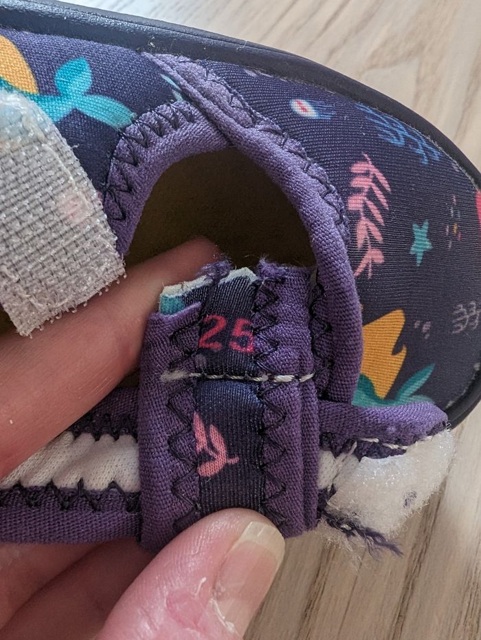 Chaussures aquatiques pour piscine ou plage, utilisées aussi pour le jardin très confortable comme des chaussons. Sans marque acheté sur Amazon Taille 25. Très bon état. #tennytebchaussuresenfant