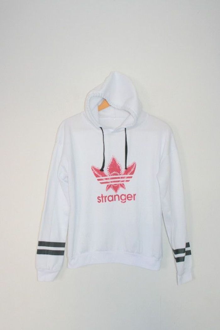 Sweat à capuche blanc Stranger Things, taille S sans étiquette, 56cm de long, 54cm d'aisselle à aisselle, légèrement pelucheux, 220g