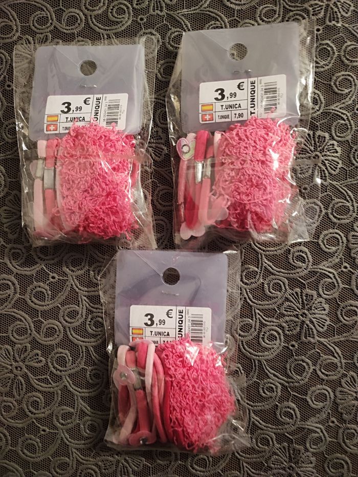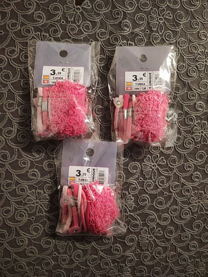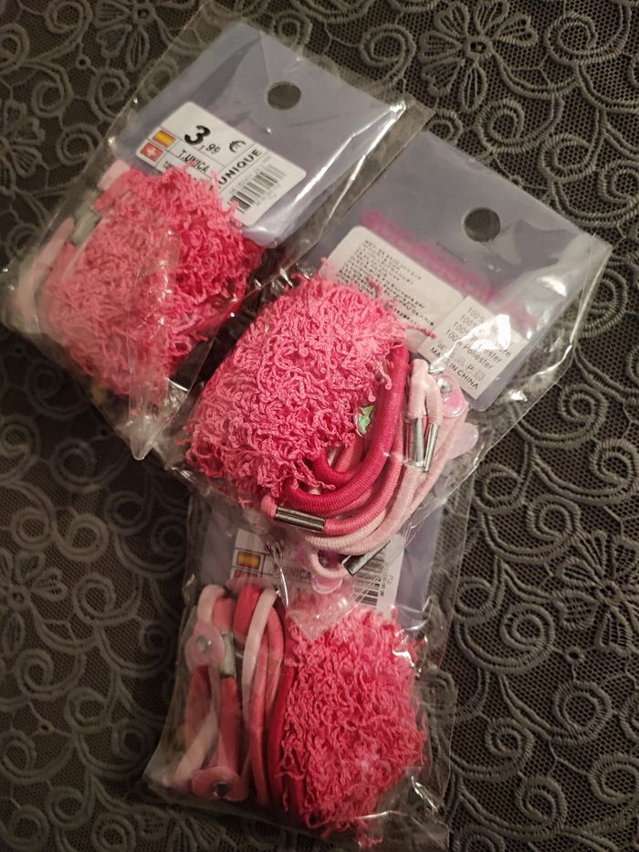 Superbe lot d'accessoires cheveux fille élastique et chouchou Profitez beau lot pour fille Rose fushia Prix de chaque paquet 3,99 e