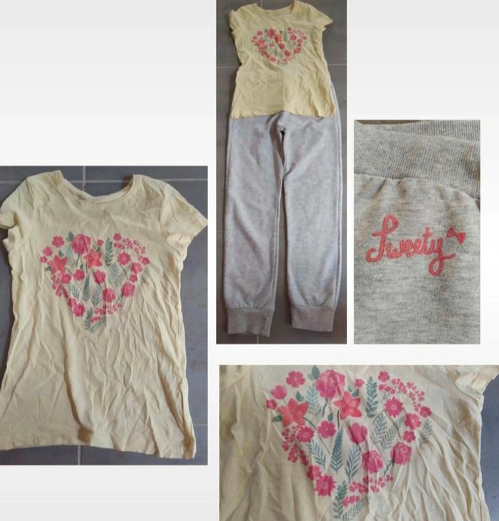 🚨 Lot indissociable ⛔ 134 cm Bas Sergent major Tee-shirt motif coeur fleuri Veste de sport Domyos en 9-10 ans #9ansfillecamilled974