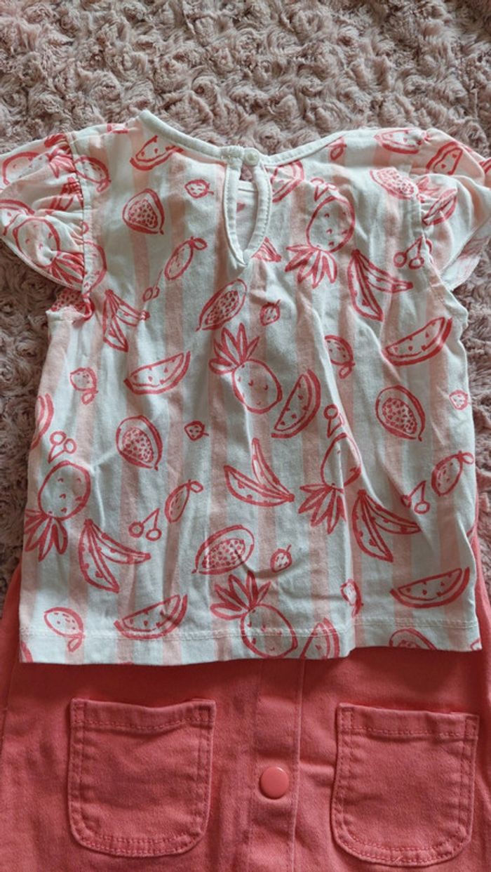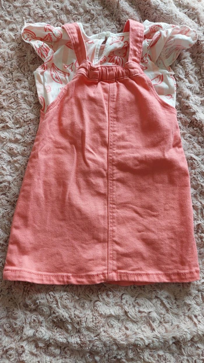 🌸Printemps/été🌸 Ensemble 2 pièces de chez primark. Salopette robe + t-shirts. Taille 9/12 mois Comme neuf juste laver jamais porter