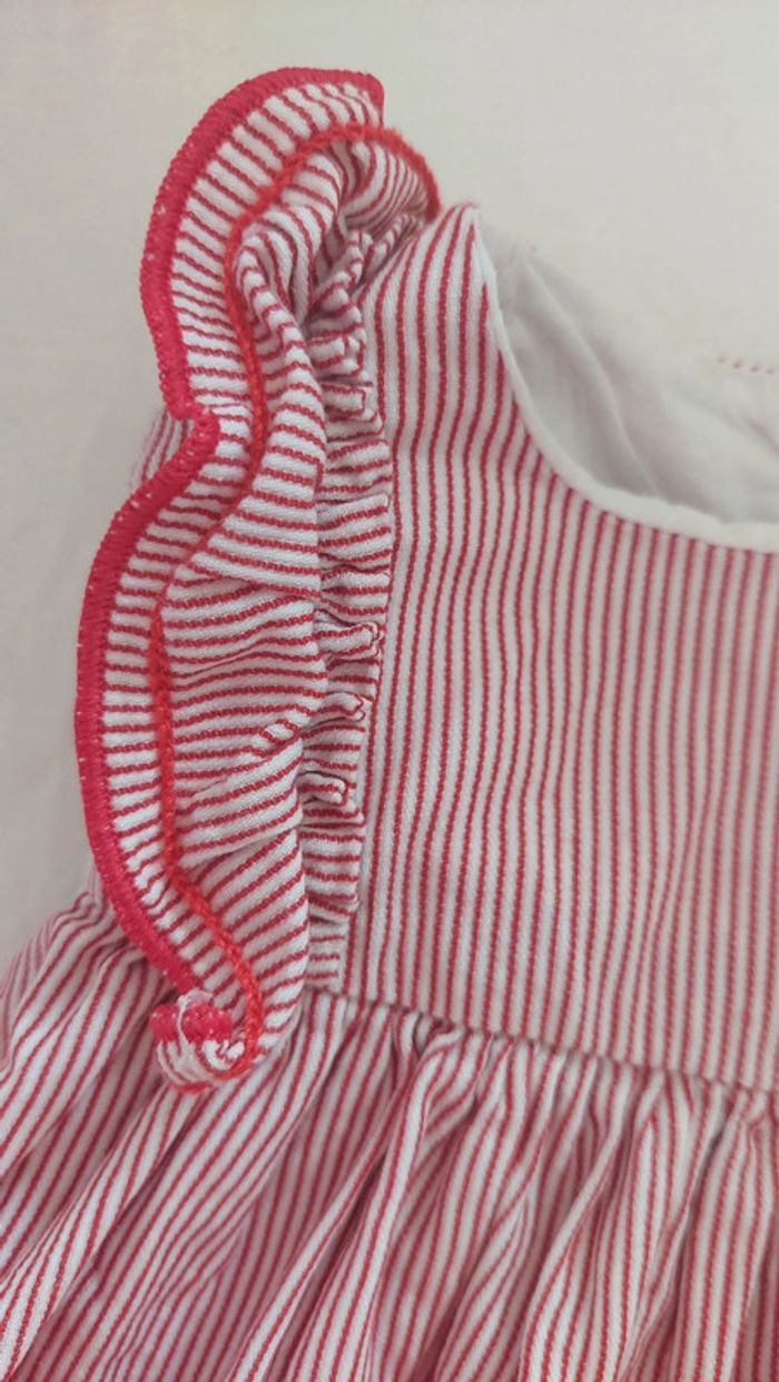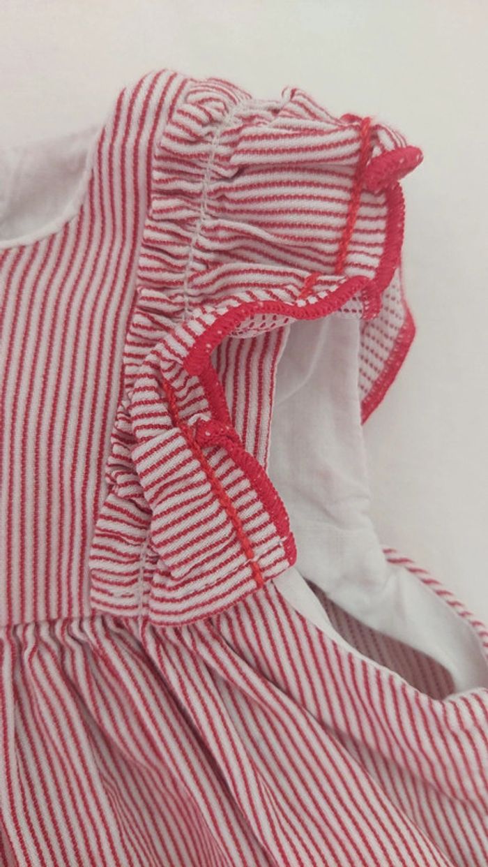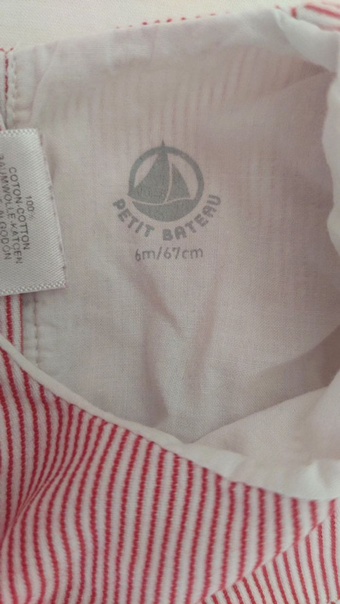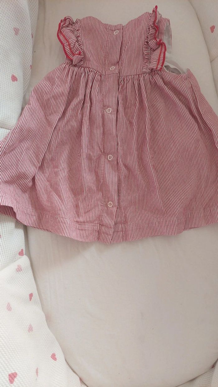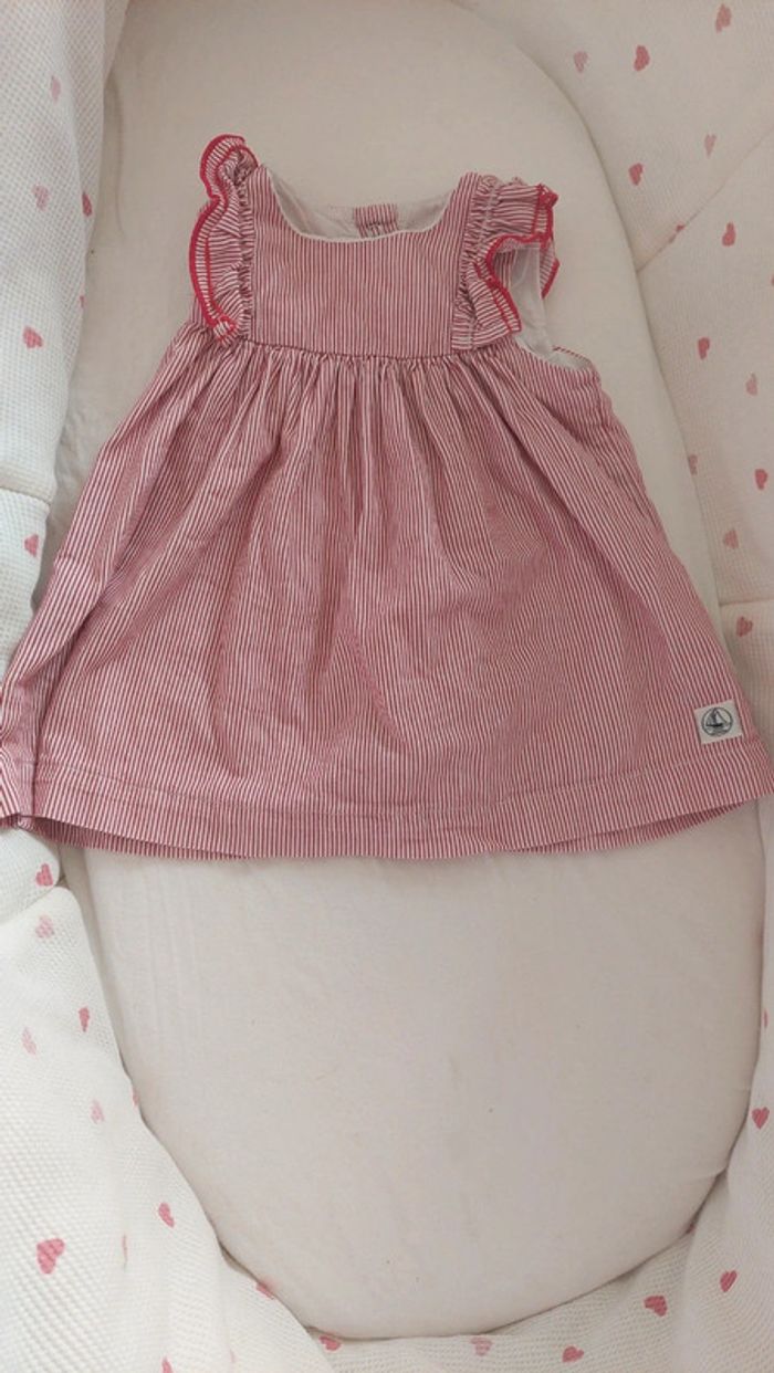 🌞 Idéal été 🌞 Robe manche court de chez petit bateau, fermeture par pression sur tous le long du dos. En très bon état Taille 6 mois Rouge à rayure