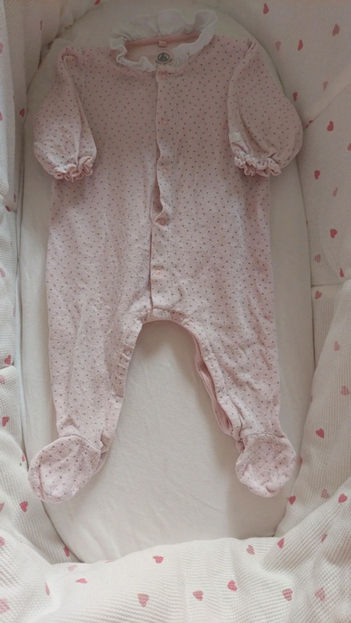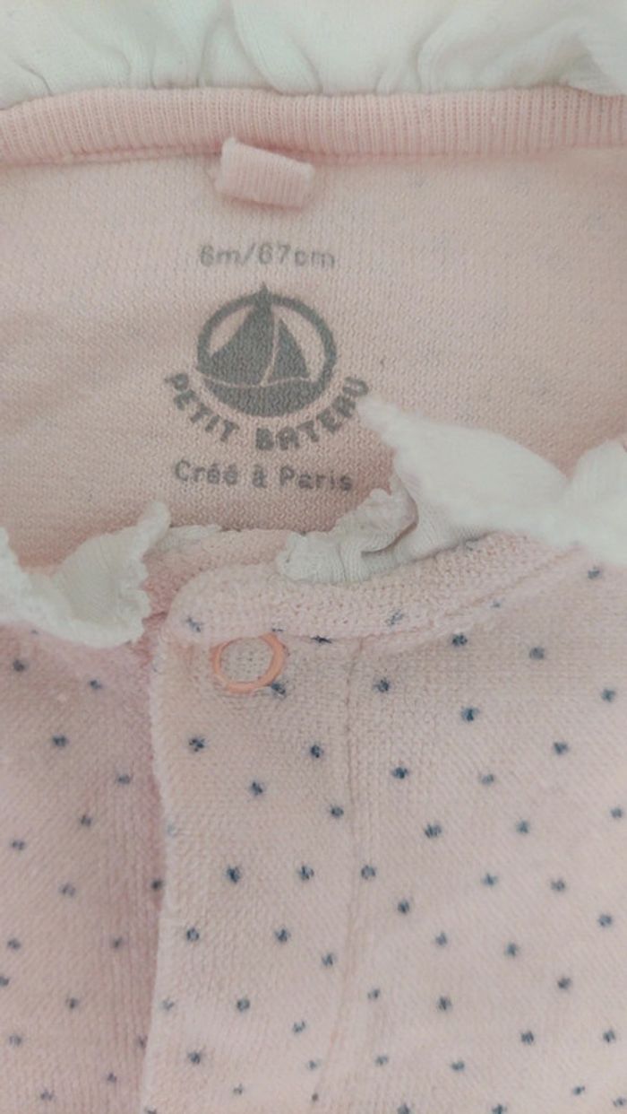 PYJAMA HIVER Pyjama de chez petit bateau, ouverture par pression devant. Taille 6 mois En bon état car boulocher Couleur, rose pâle Motif fleur pois
