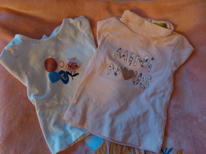 Lot 2 t-shirts manche longue, dont 1 avec col rouler de chez tape à l'oeil. <mini nous> <family> Taille 3 mois En excellent en état