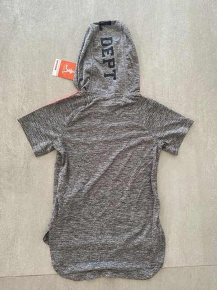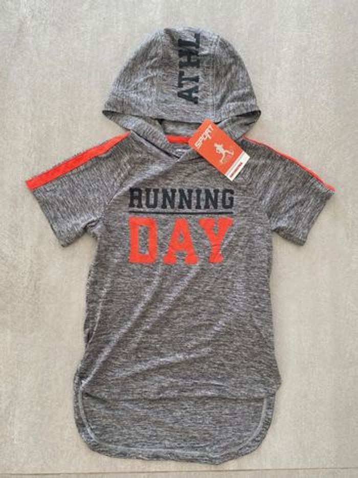 T-shirt sport running à capuche Gris chiné et orange Garçon Taille 8 ans Marque Orchestra Neuf avec étiquette Matière sport douce et légère 100% polyester