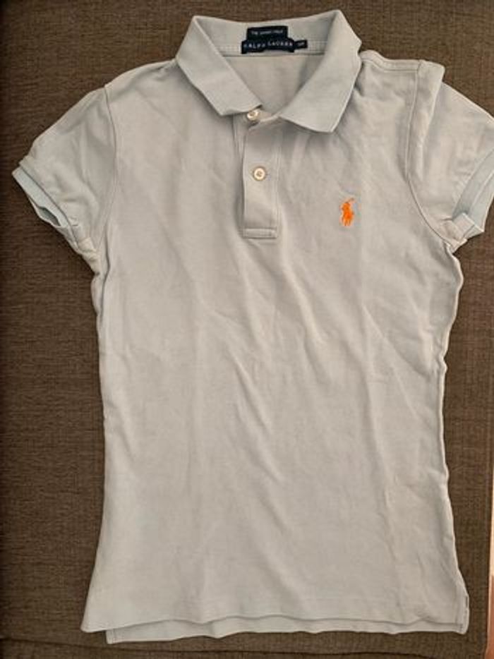 Polo manches courtes bleu ciel logo orange marque Ralph Lauren taille S coupe skinny