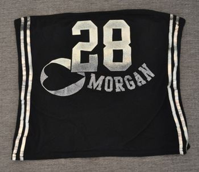Top bustier noir marque MORGAN style USA avec fines paillettes sur les inscriptions Taille 2 (38)