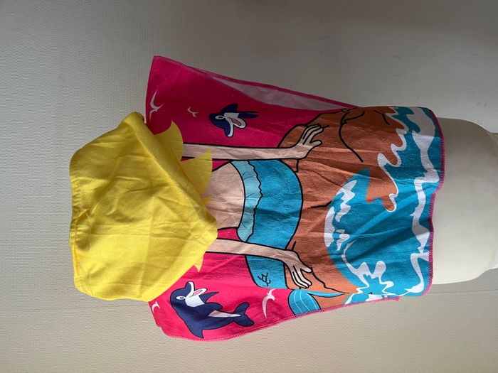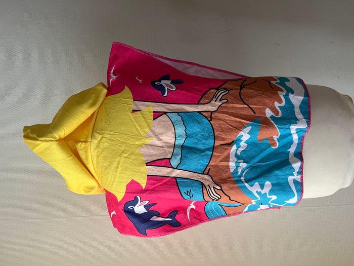 Cape de bain, serviette à capuche sirène rose Dimensions : 50 cm x 50 cm sans la capuche