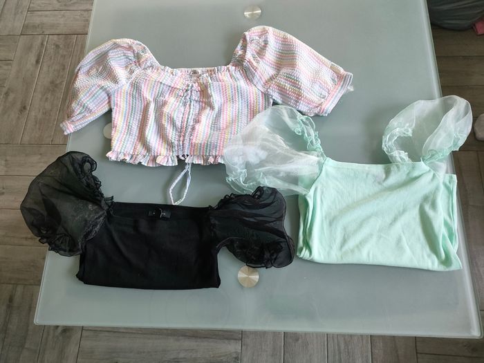 Lot de 3 top été 38 Un top à manche Pimkie Deux top à manche transparente New look