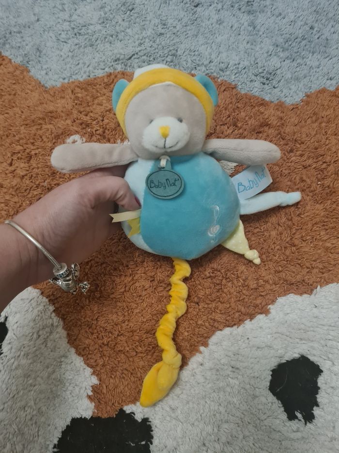 Boite à musique les touptis ours bleue et jaune de chez Babynat' Neuf, juste exposé sur une étagère J'ai d'autres articles de mon fils que je vais rajouter petit a petit, n'hésitez pas à jeter un coup d'œil #NoaM0604 #NoaMJouets