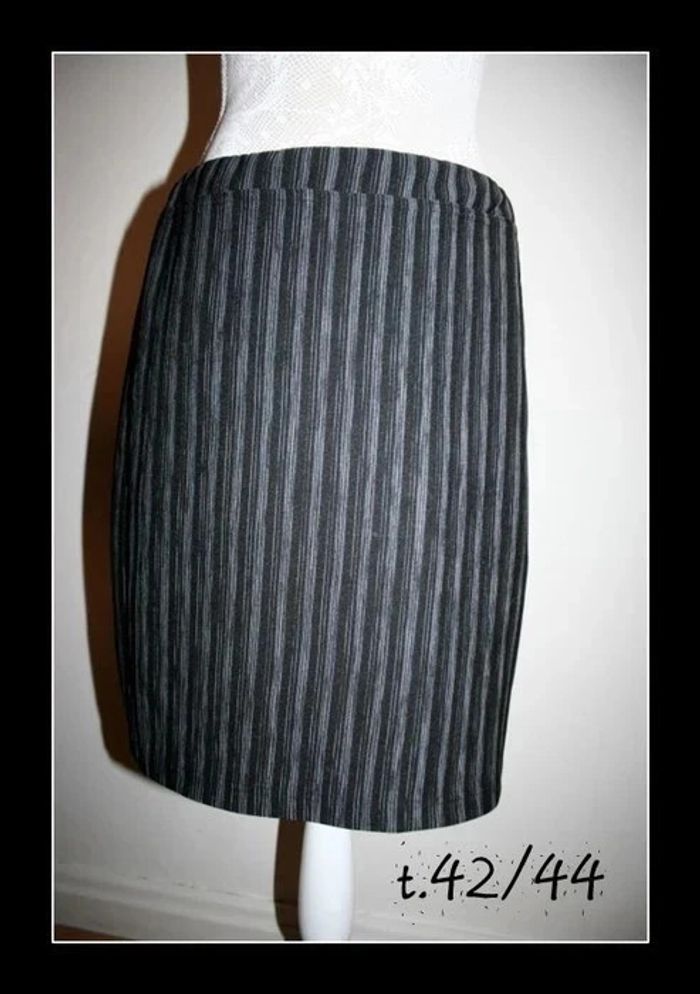 Jupe stretch rayé noir/gris taille 42/44, sans étiquette, 170g