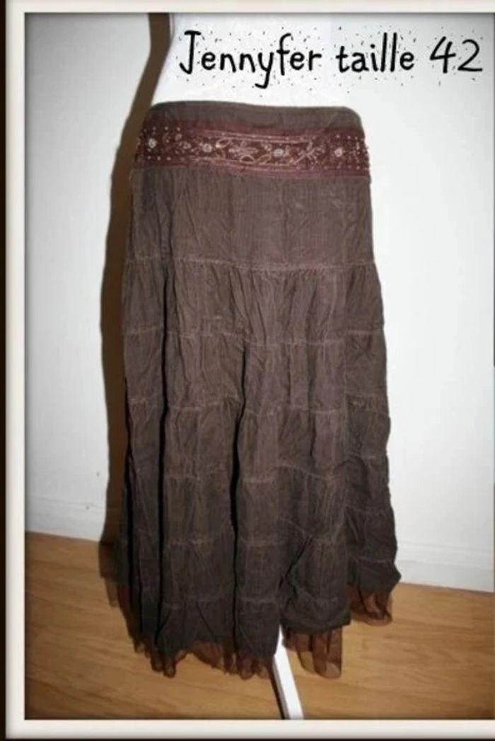 Jupe longue chocolat velours avec perles à la ceinture Jennyfer taille 42 - photo numéro 1