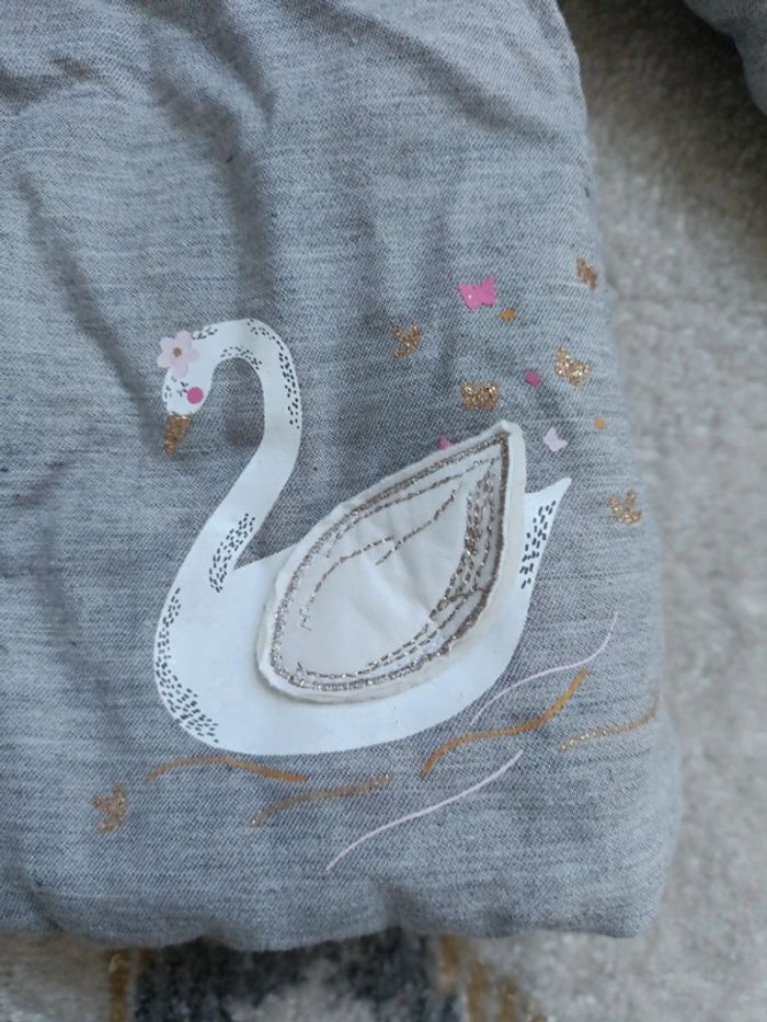 Ensemble Blouson chaud coton rembourré Imprimé cygne Robe sans manche assortie T shirt col un peu montant imprimé étoiles dorées et blanches Jamais porté Etiquettes interieures toujours presentes
