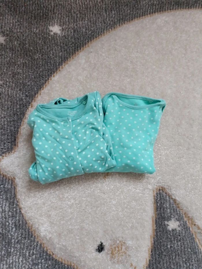 Ensemble neuf Turquoise à pois Très légère différence de teinte entre le pyjama et le bodie, présente à l'achat, minime Mixte fille garçon Excellent qualité du tissu et des finitions S'ouvre complètement