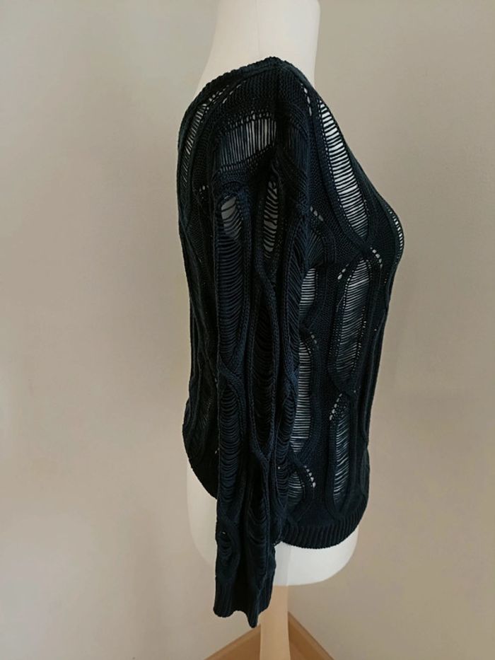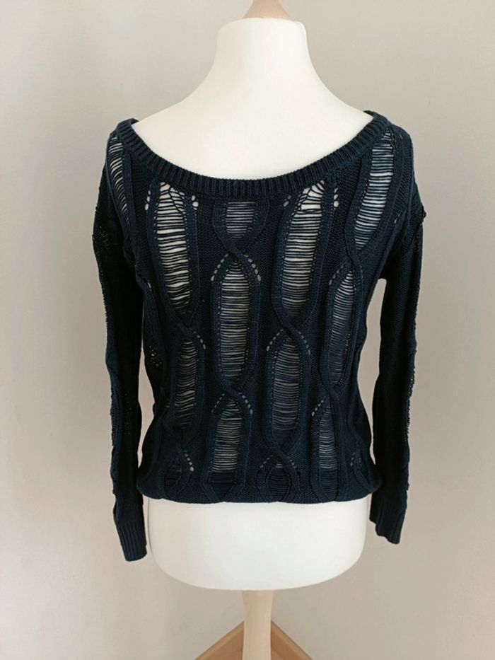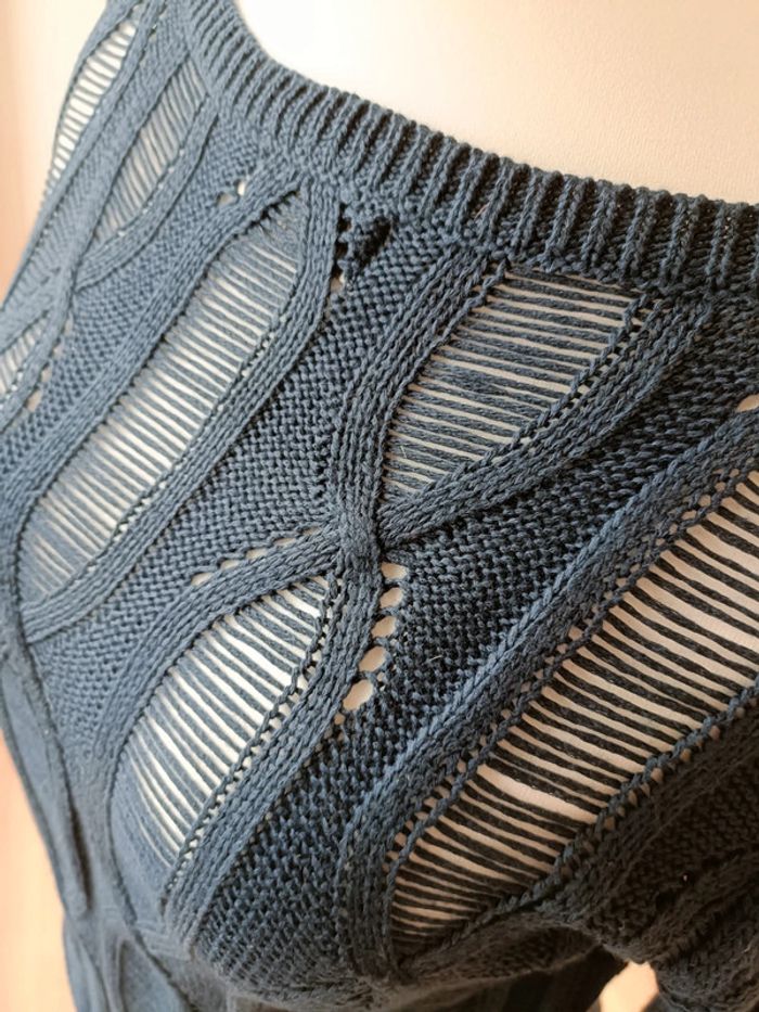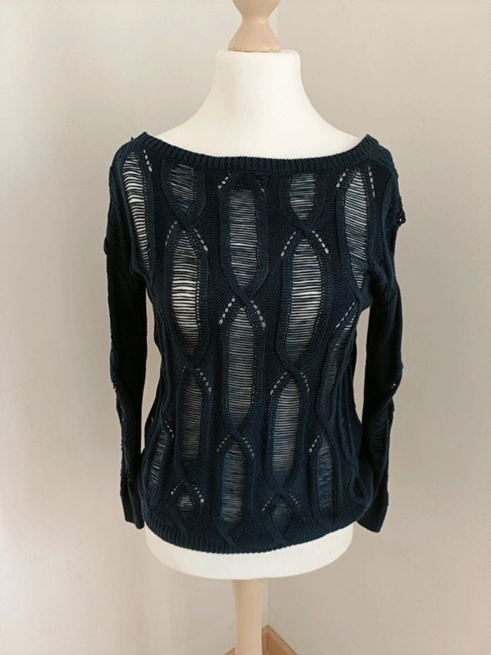 Pull en maille bleue ajourée Comme neuf Taille S/M Le mannequin sur les photo est un 38/40