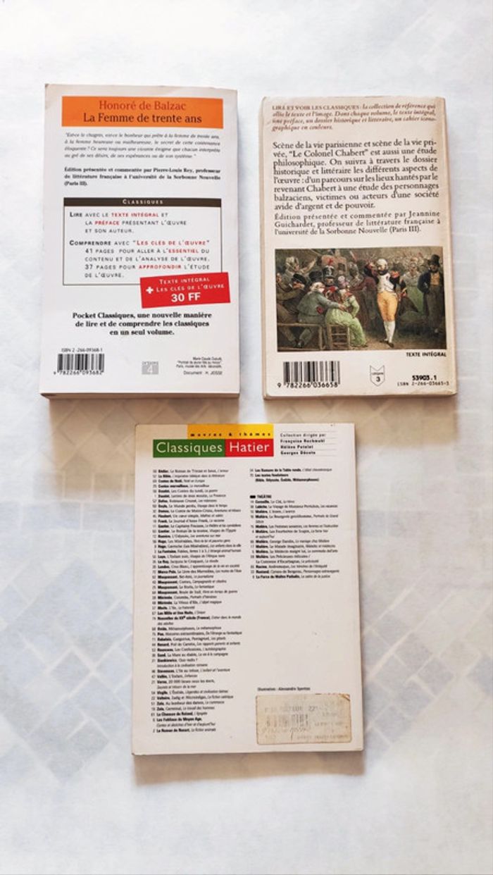 Lot de 3 livres: - Honoré de Balzac, la femme de 30 ans 2€ - Honoré de Balzac, le colonel Chabert 2€ - La Bible 2€ Ou 5€ le lot