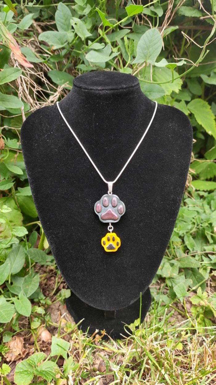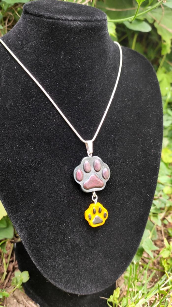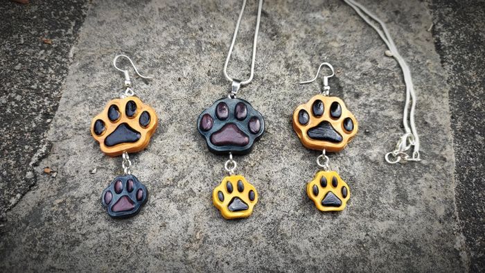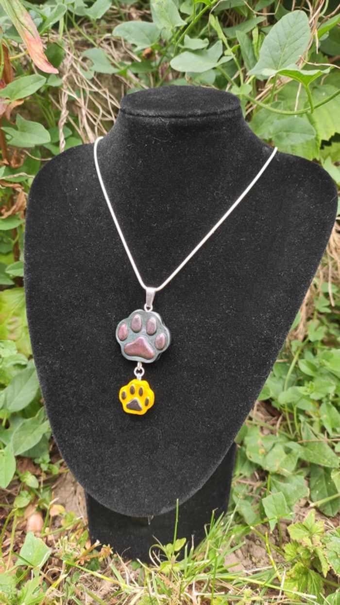 Parure de bijoux pattes de chat Un collier et une paire de boucles d'oreilles Collier argenté inoxydable