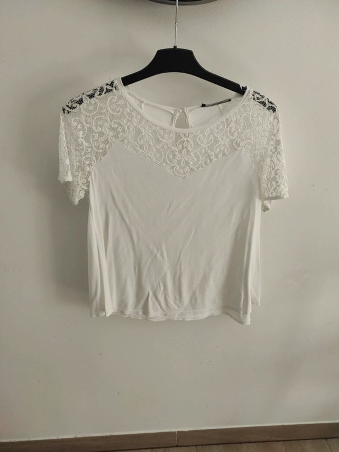 T-shirt blanc à dentelle taille 40 - photo numéro 2