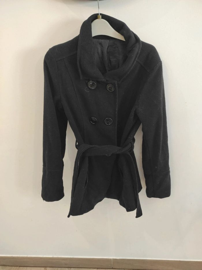 Manteau type trench avec ceinture, col. Noir. Taille 38 (étiquette coupée) ➡️ Réduction sur les lots