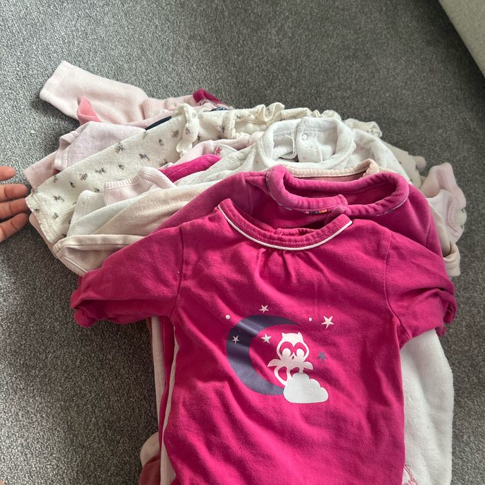 Lot de 20 pijama fille taille 3 mois en bonne état de différent marque ( vert baudet , orchestra , sergent major , kiabi , tape à l’œil , Disney baby ) Plus divers petite tenu super sympa