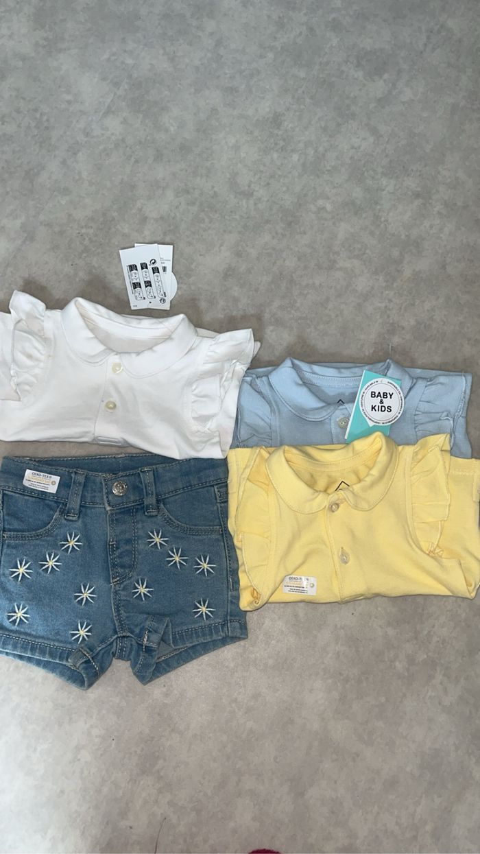 Lot 3 mois filles neuf 3 polo et un short en jean