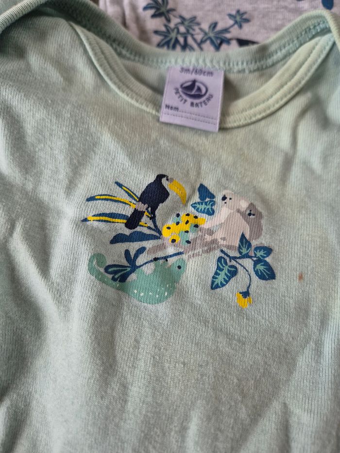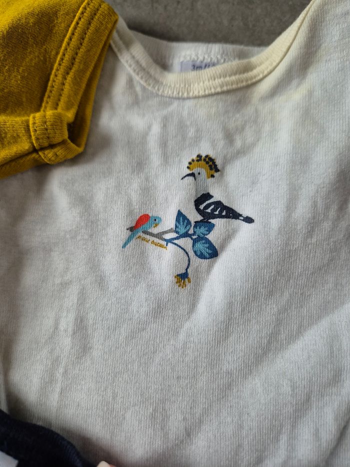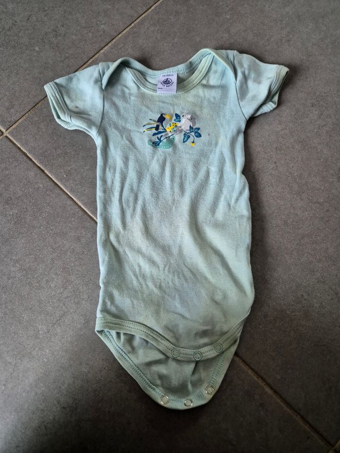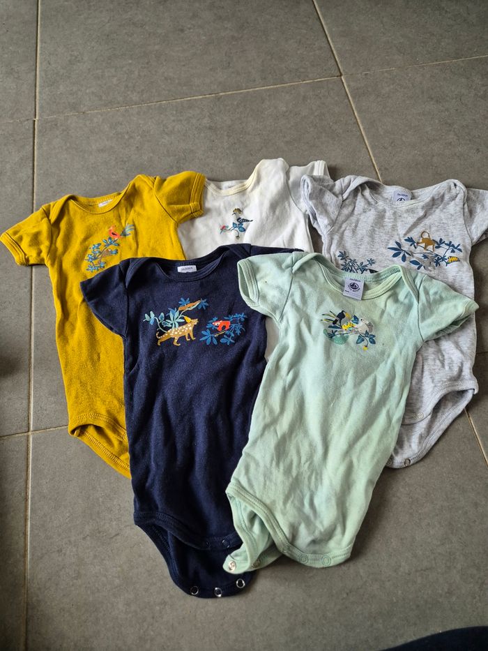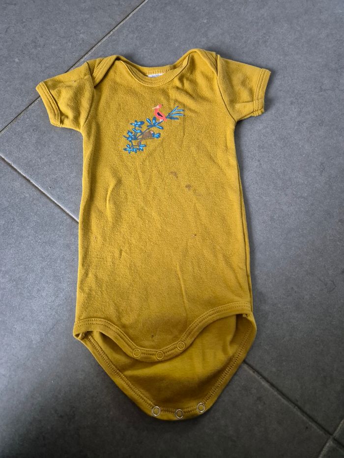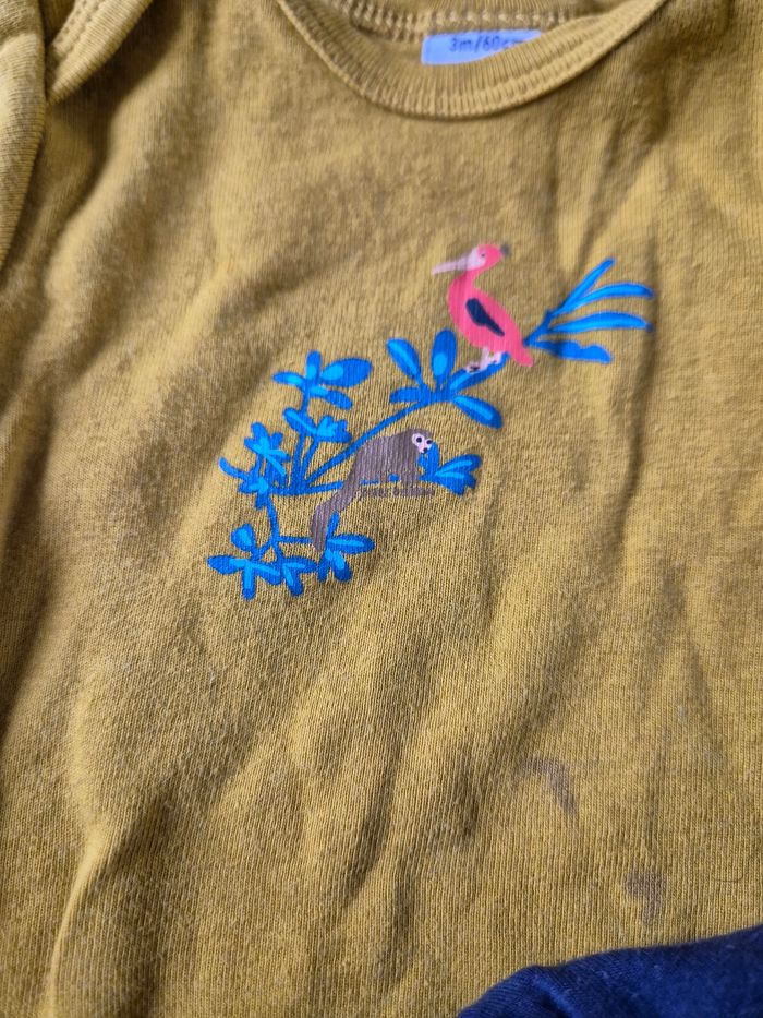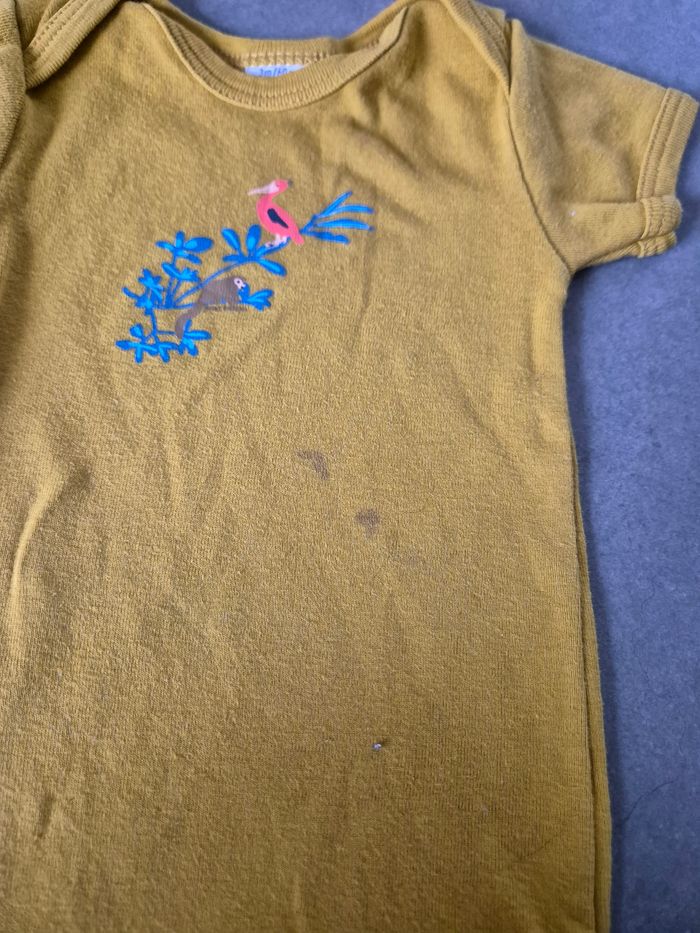 Lot 5 body Les bodys couleurs clairs sont jauni au niveau du col et des boutons de pression Le body ocre à 2 tâches devant