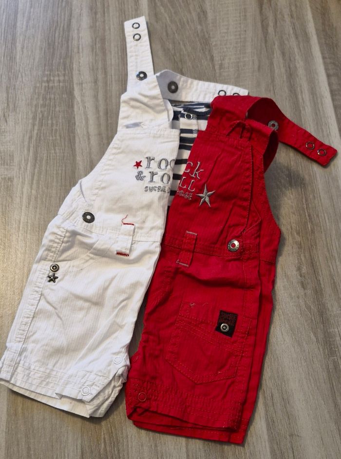 Lot de 2 salopette avec les tee shirt pression dans le dos Une rouge une blanche