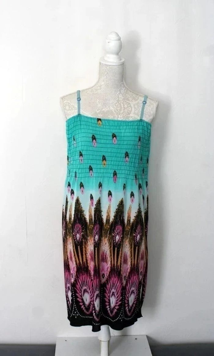 Robe d été légère smockée sur le haut, bretelles réglables, taille M/L mais convient à un XL également (165g)