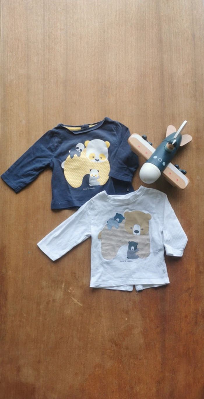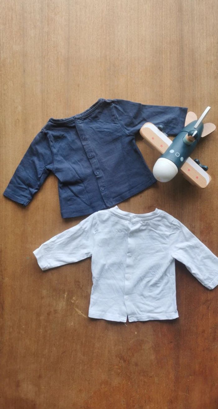🌼 Obaïbi lot 1mois 53cm tee-shirts manches longues idéal jumeaux coton 🇨🇵 crée en France 👶 - photo numéro 2