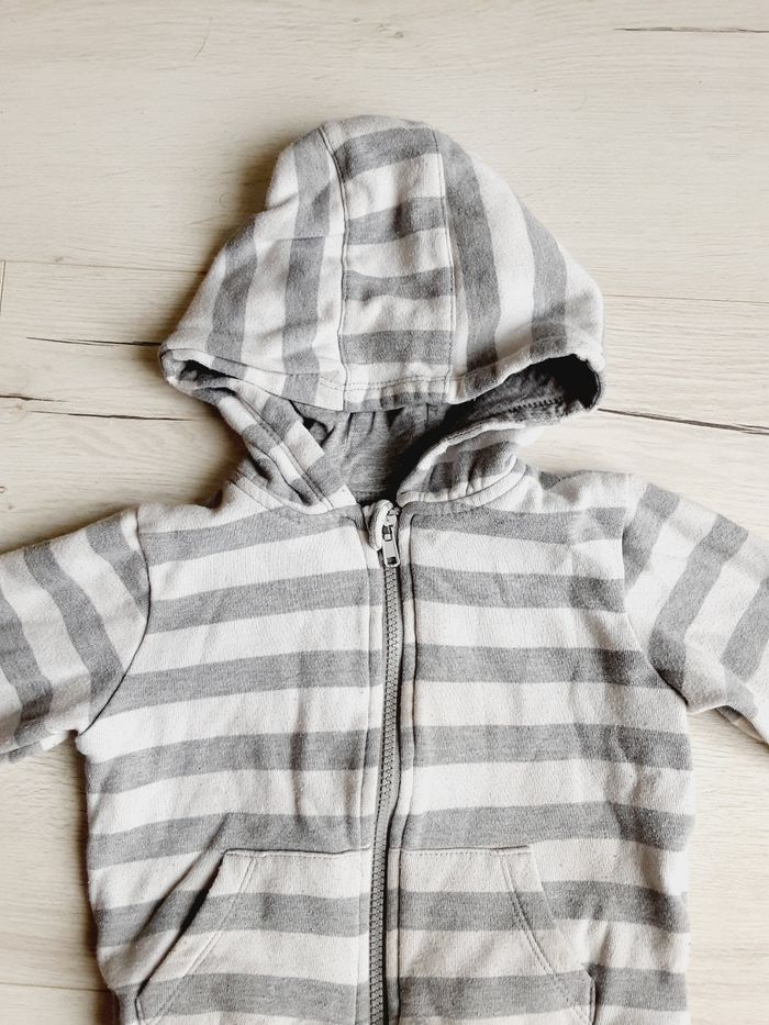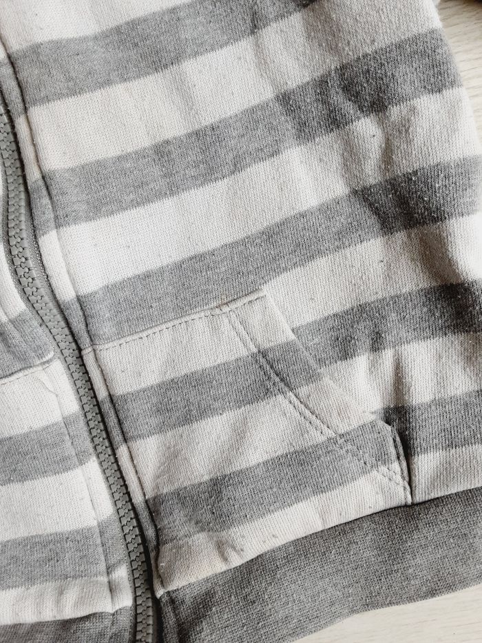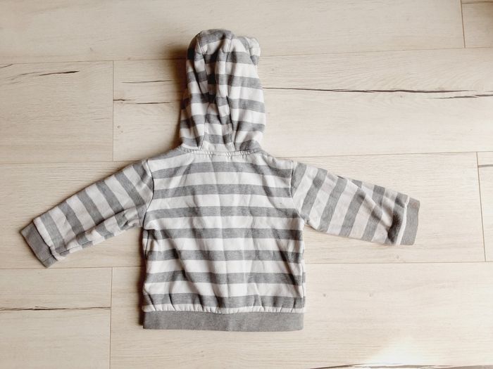Vêtement bébé mixte garçon fille gilet à capuche rayé gris blanc Mots d’enfants 2 ans - photo numéro 4