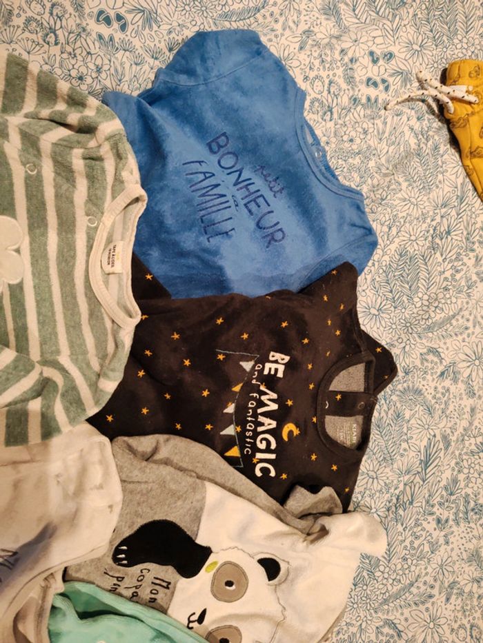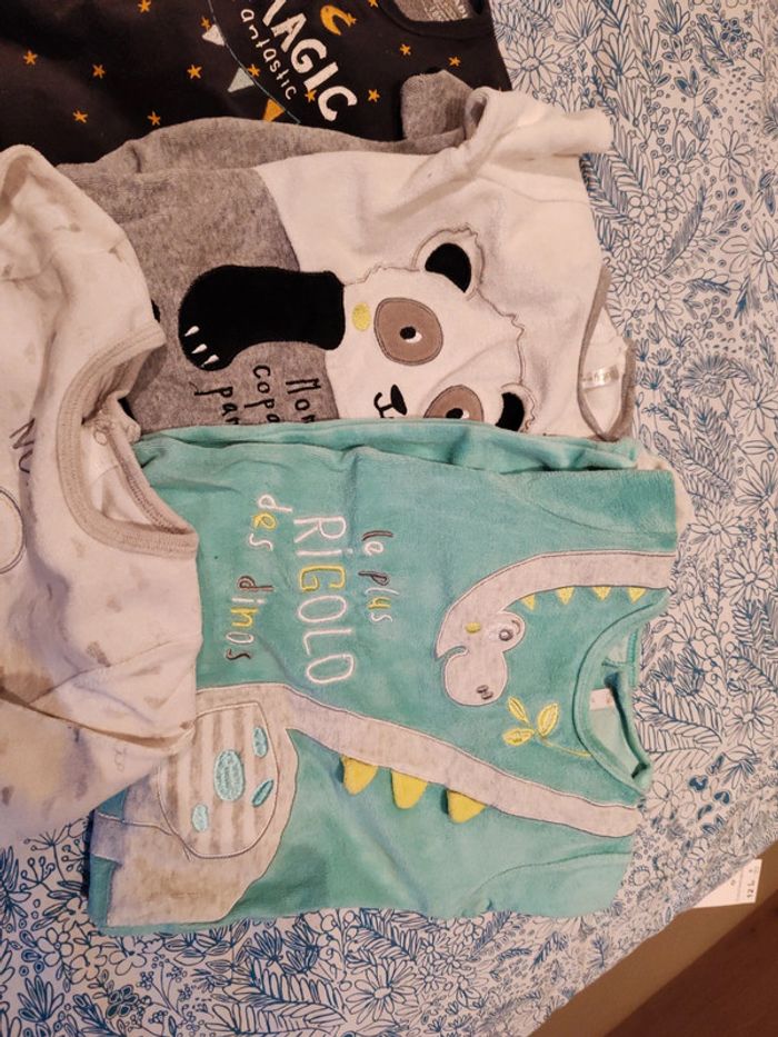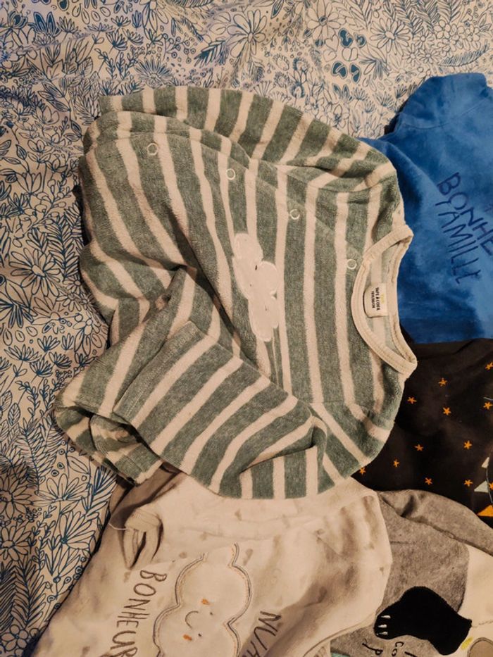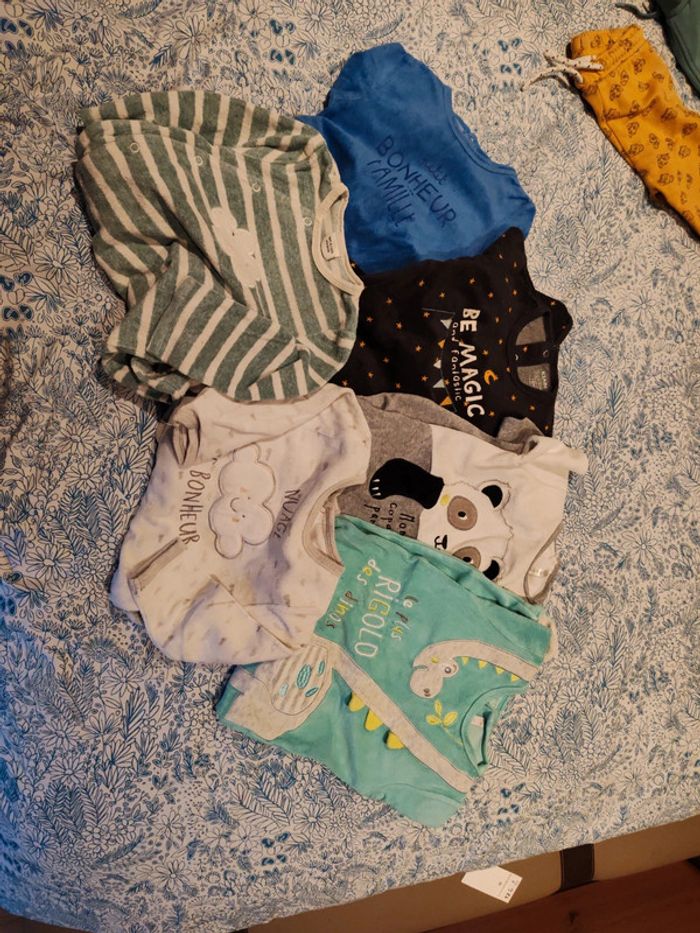 Un lot de 6 pyjamas 18 mois plusieurs marques tape à l'oeil Kiabi... Ce sont des pyjamas qui ont été portés. Tous en très bon état voir les deux dernières photos le bleu est décousu un petit peu au niveau de la pression et le vert et blanc rayé et un petit peu gris sous pieds. #edwige2010garcon18mois