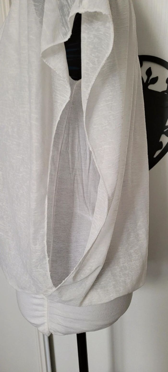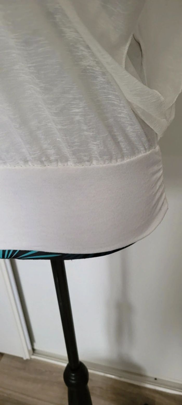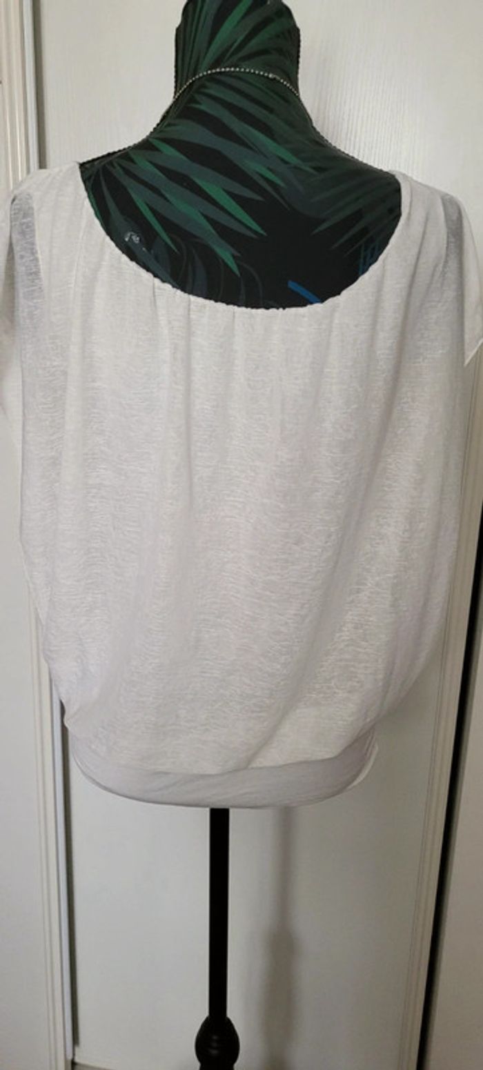 Blouse blanche en viscose doublure Tee-shirt Taille elastique Sautoir en forme de cœur ajouré