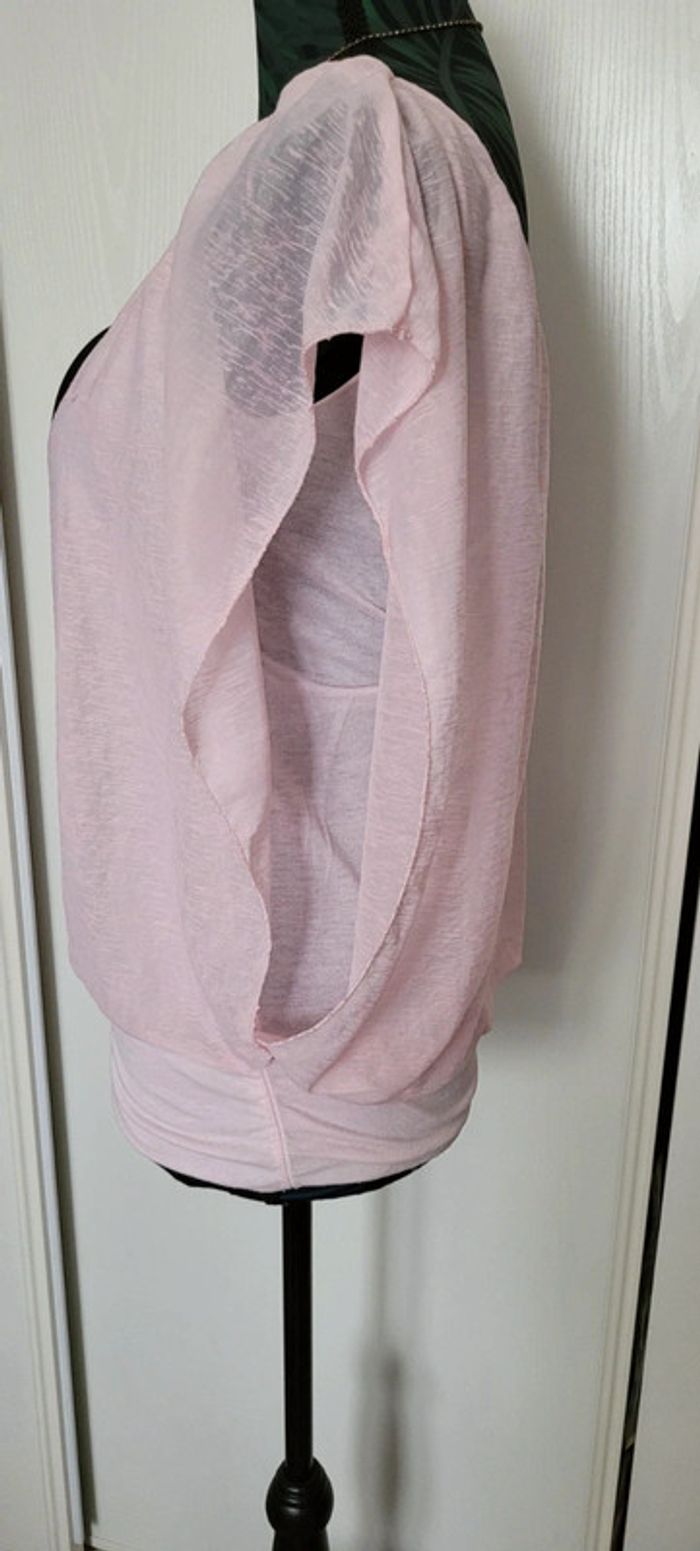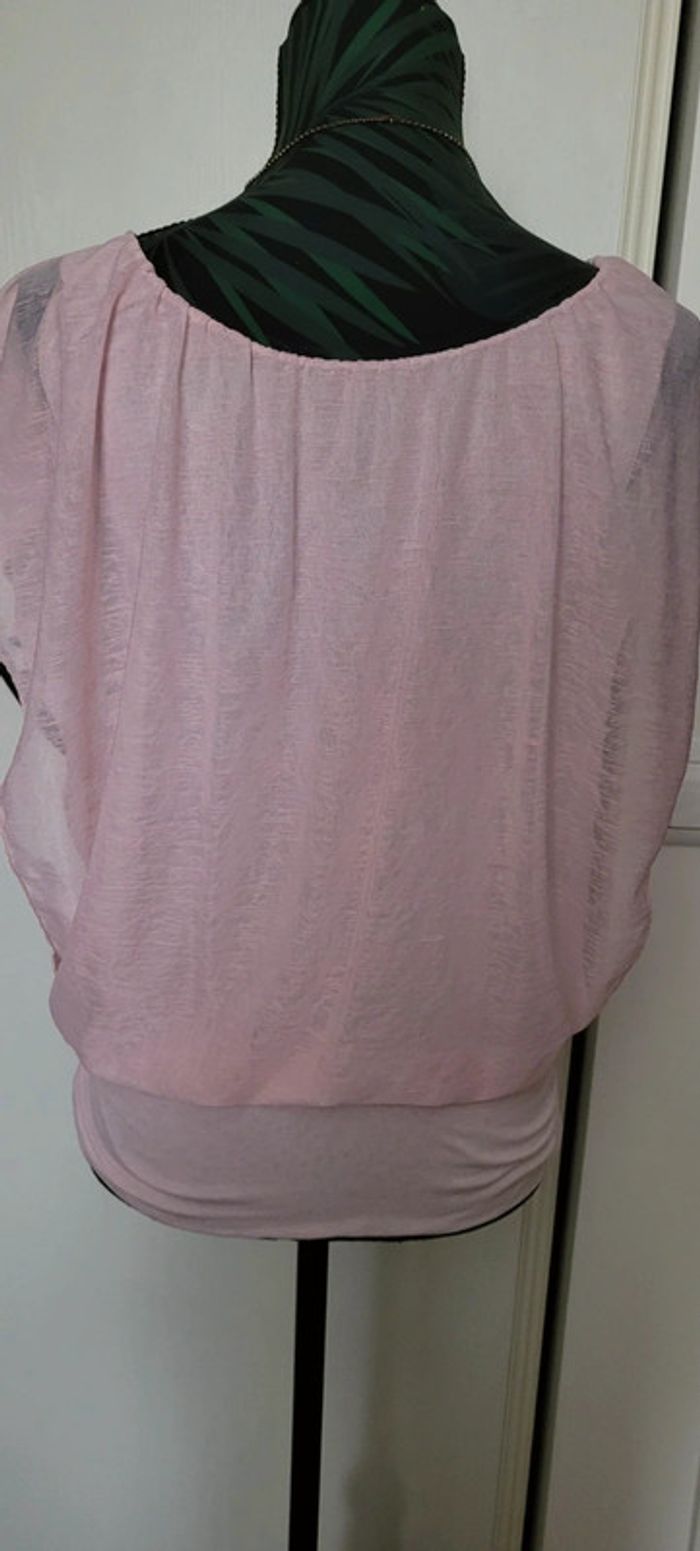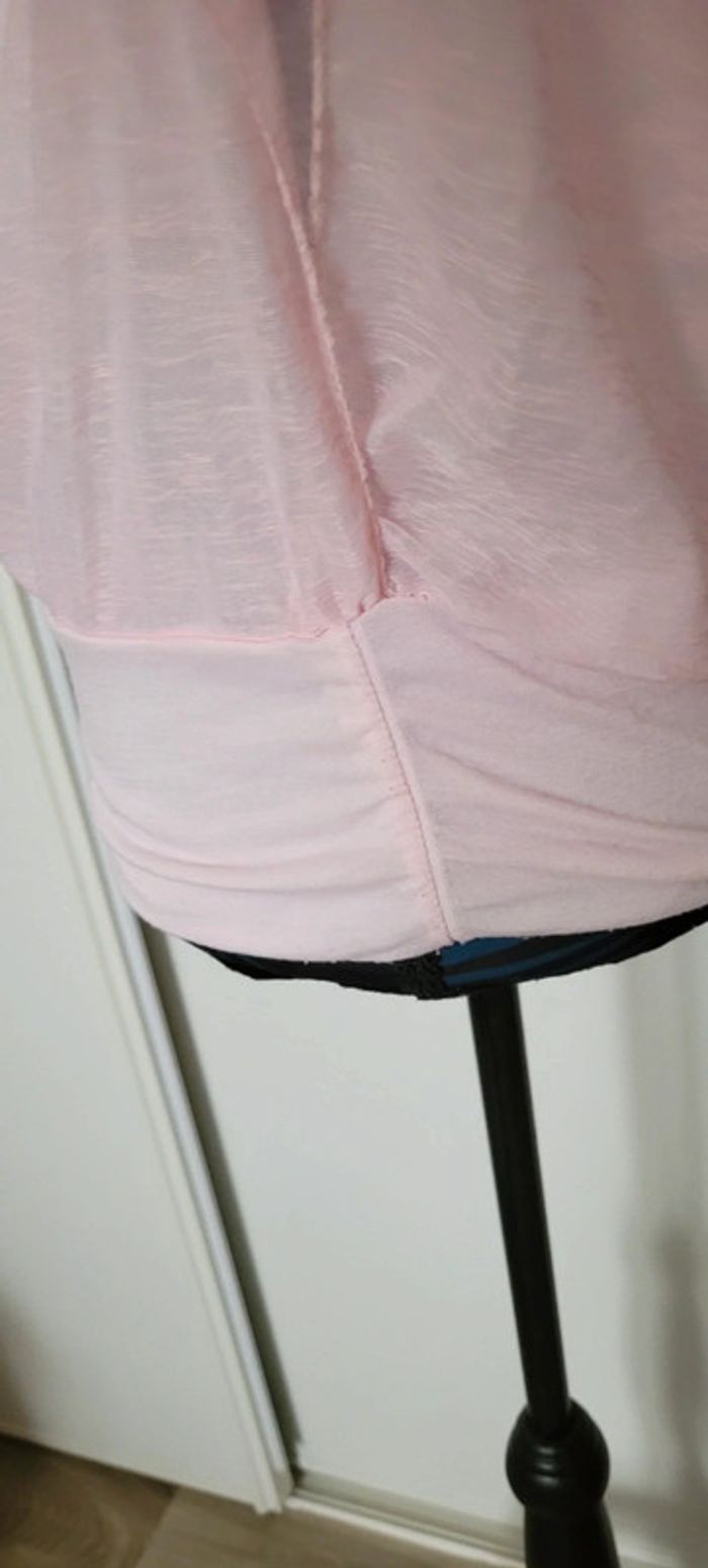 Blouse rose en viscose doublure Tee-shirt Taille elastique Sautoir en forme de nœud noir