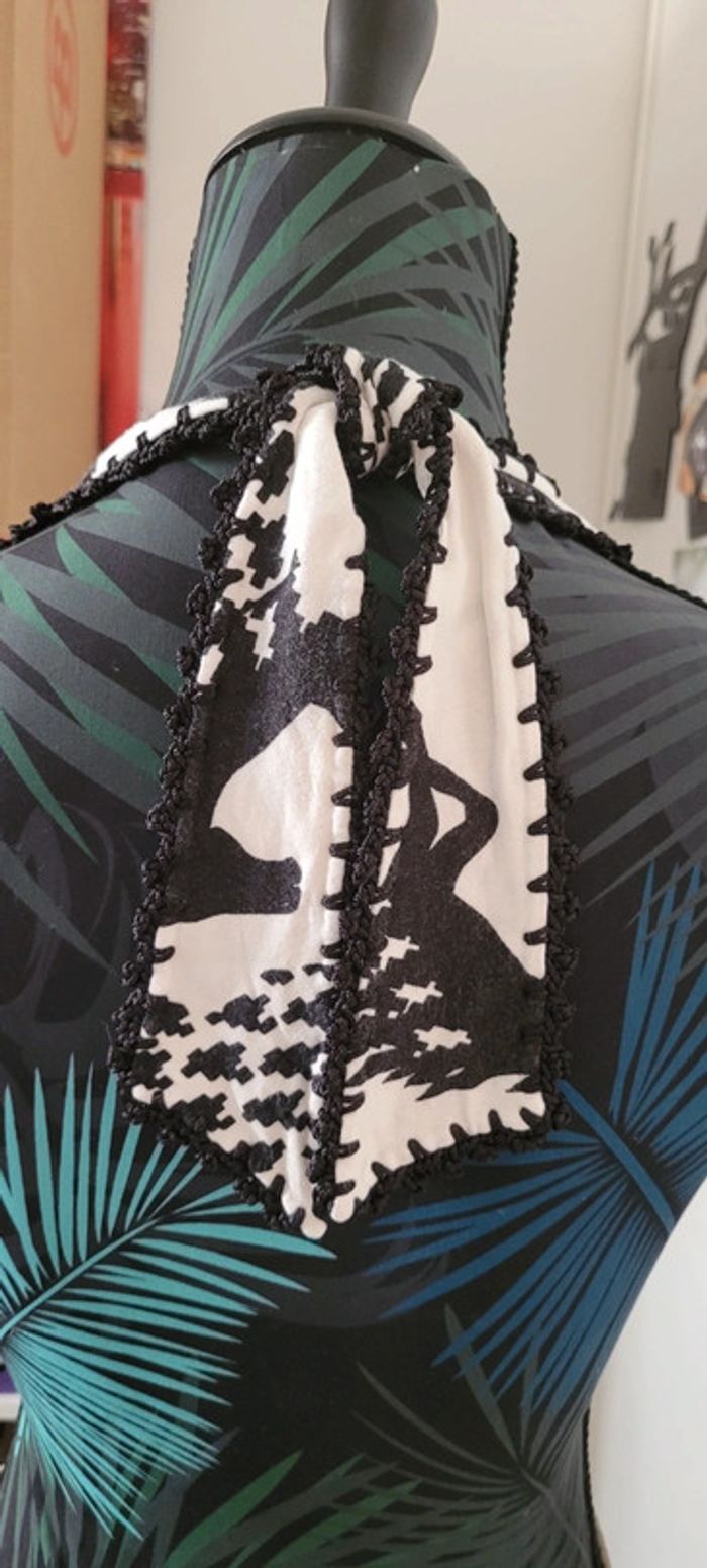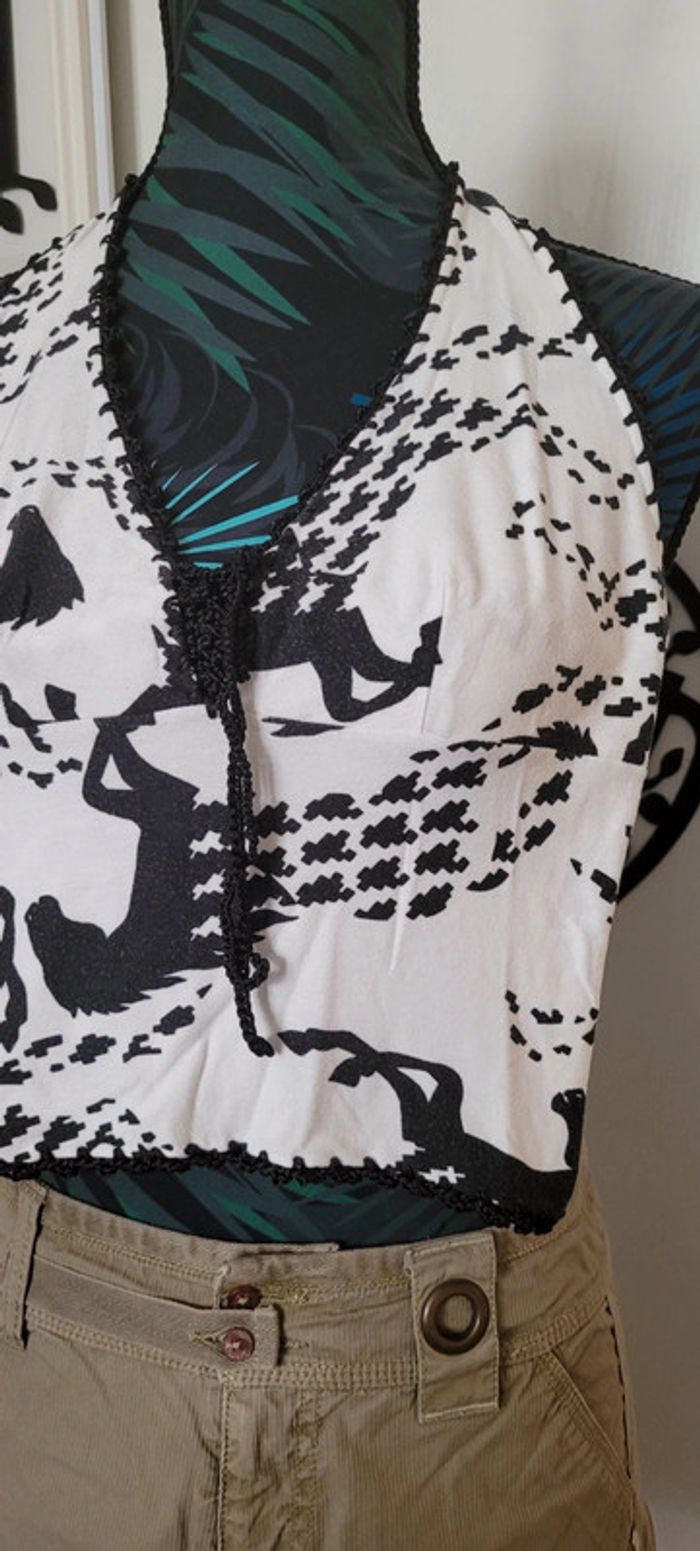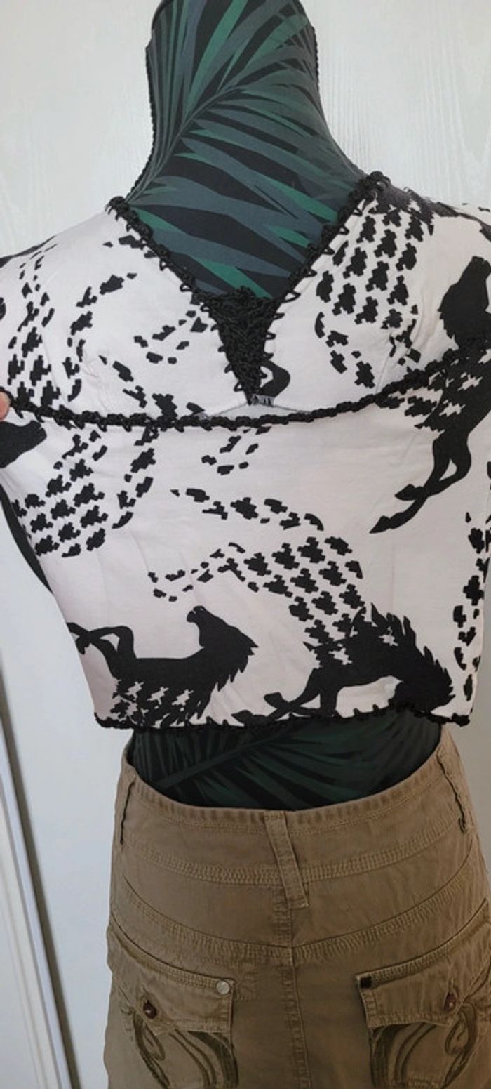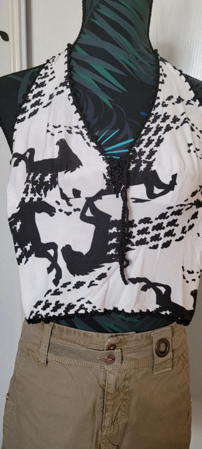 Top dos nu à nouer blanc Motif cheval noir