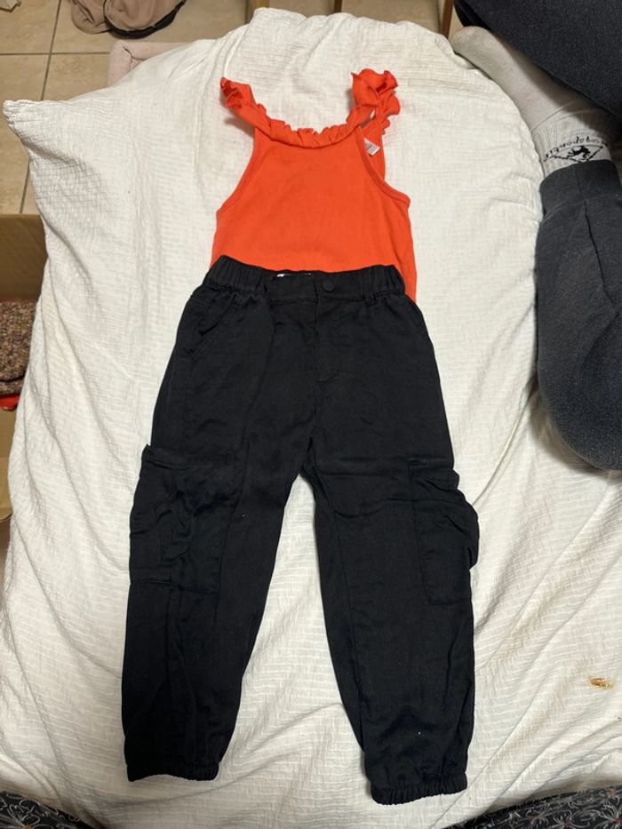 Débardeur orange okaidi avec une petite tache voir photo Cargo noir Zara