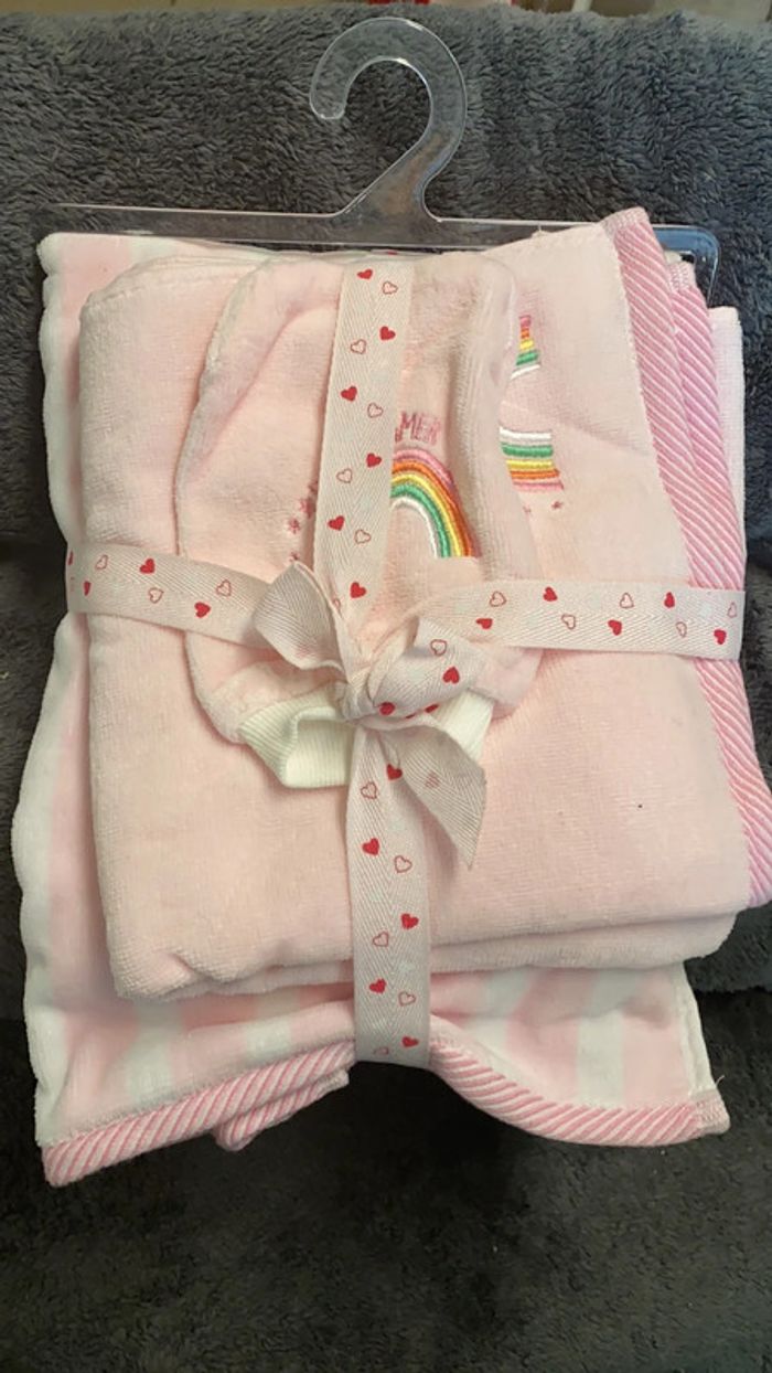 Lot d’un gant de toilette avec deux serviettes Neuf jamais utilisé