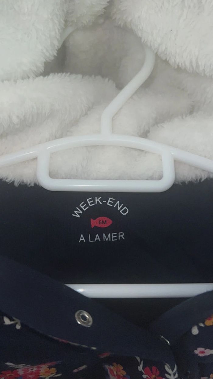 Comme neuve , peu portée Taille 6mois Ouverture fermeture éclair sur le devant et boutons à l’entrejambe pour faciliter le change. Capuche en polaire Matière non imperméable