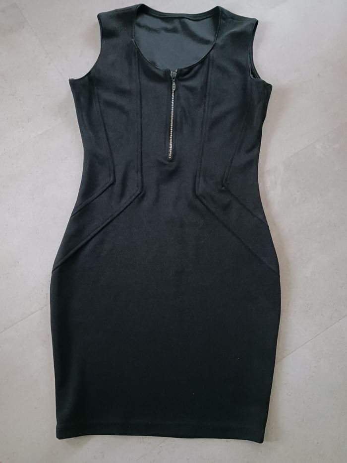 Robe noire sans manches avec fermeture éclair strass stretch - photo numéro 1