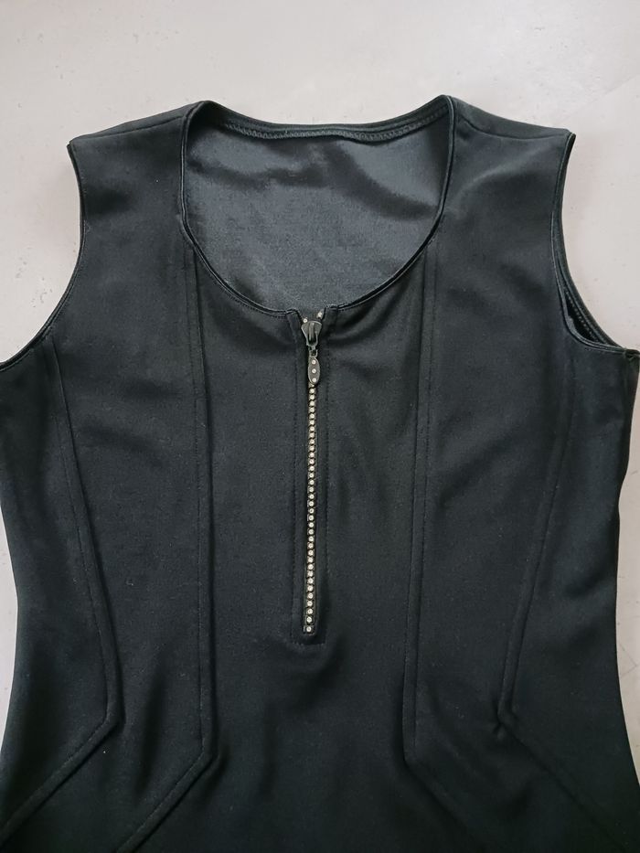 Robe noire sans manches avec fermeture éclair strass stretch - photo numéro 2