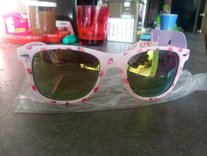 Lunette de soleil pour ado ou adulte rose avec des fraises de chez Claire s