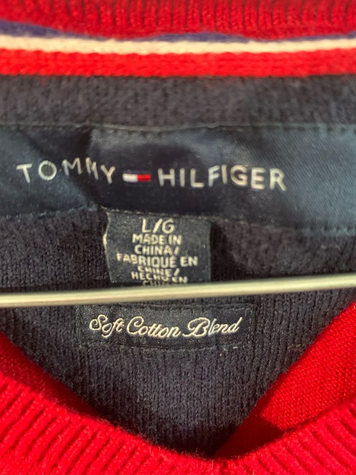 Pull Tommy Hilfiger col v Taille L Très bon état Couleur rouge